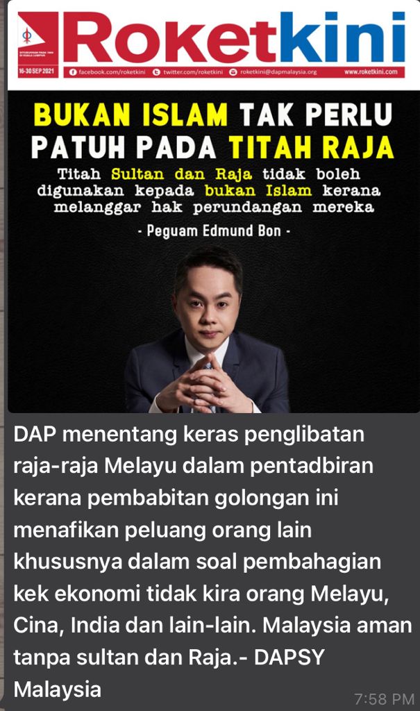 “Bukan Islam tidak perlu patuh titah Agong!” – Begitulah kata peguam Edmund Bon.